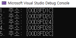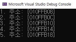 printf("%d. 주소: [%p]\n", i + 1, arr + i);