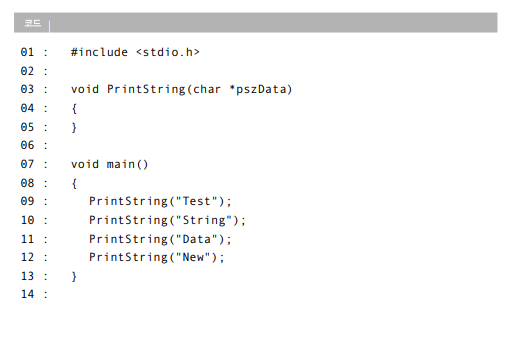 4. 원형이 [void PrintString(char* pszData);]와 같은 함수를 작성합니다. 이 함수는 인자로 전달받은 문자열을 화면에 출력합니다. 최초에 호출될 때는 길이와 상관 없이 무조건 출력하지만 이후로는 앞서 출력한 문자열보다 인자로 전달받은 문자열이 더 길 경우에만 출력합니다. main() 함수의 코드가 다음과 같다면 Test와 String만 화면에 출력되어야 합니다. 단, 절대로 전역 변수를 사용하지 말아야 합니다.