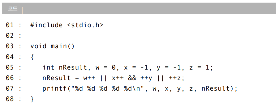따라서 ++y && ++z연산을 해보나 마나 논리합 연산의 결과는 1(참)이다.
